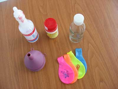 - Renggangkan mulut balon, dan masukkan kedalam mulut botol. Pastikan balon melekat erat pada mulut botol. Biarkan balon yang berisi soda kue tersebut menjuntai agar tidak ada soda kue yang masuk ke dalam botol.